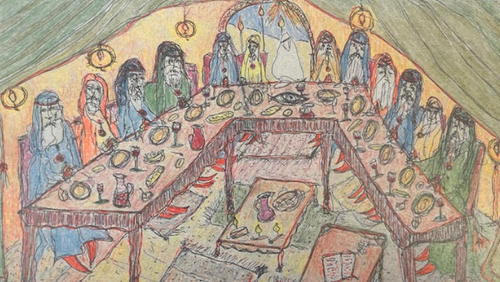 langbord i midterskibet, hvor vi stående vil indtage nadvermåltidet, som Jesus holdt det med sine disciple.